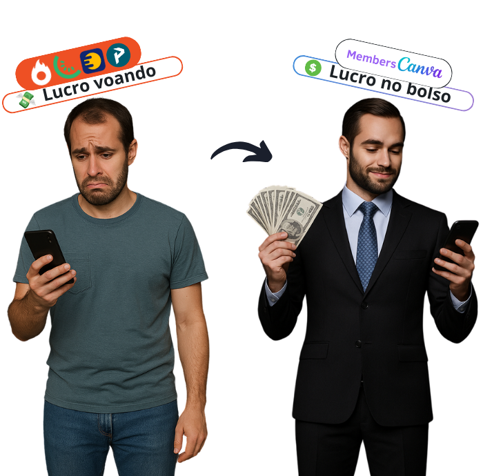 Usando o Canva — uma ferramenta simples e popular entre criadores de conteúdo, Vagner descobriu o método Members Canva, que hoje ajuda infoprodutores a economizar valores significativos que antes eram desperdiçados em taxas desnecessárias.