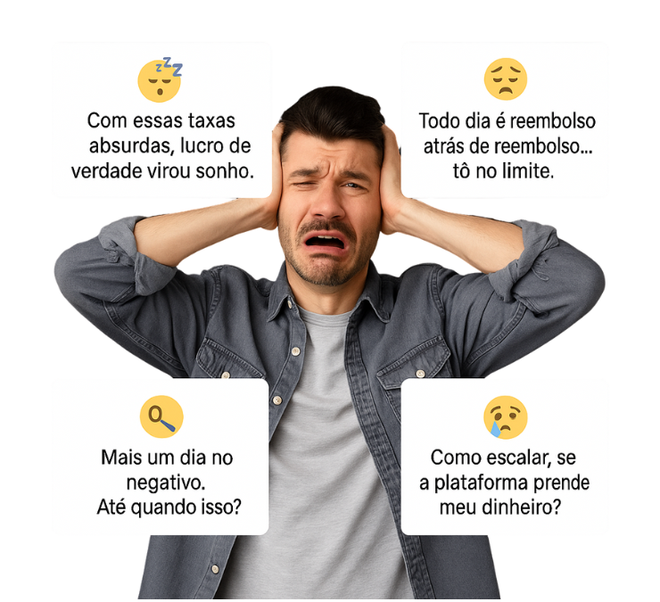 Como está sua vida hoje, vendendo seus produtos e vendo o lucro sumir em taxas e reembolsos?