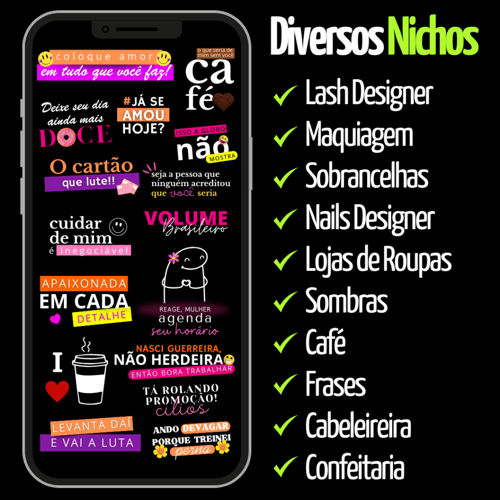 Aumente seu engajamento e pare de ser ignorada. Com o SUPER PACK ADESIVOS DE STORIES você conquistará os stories mais deslumbrantes e cativantes de todos.