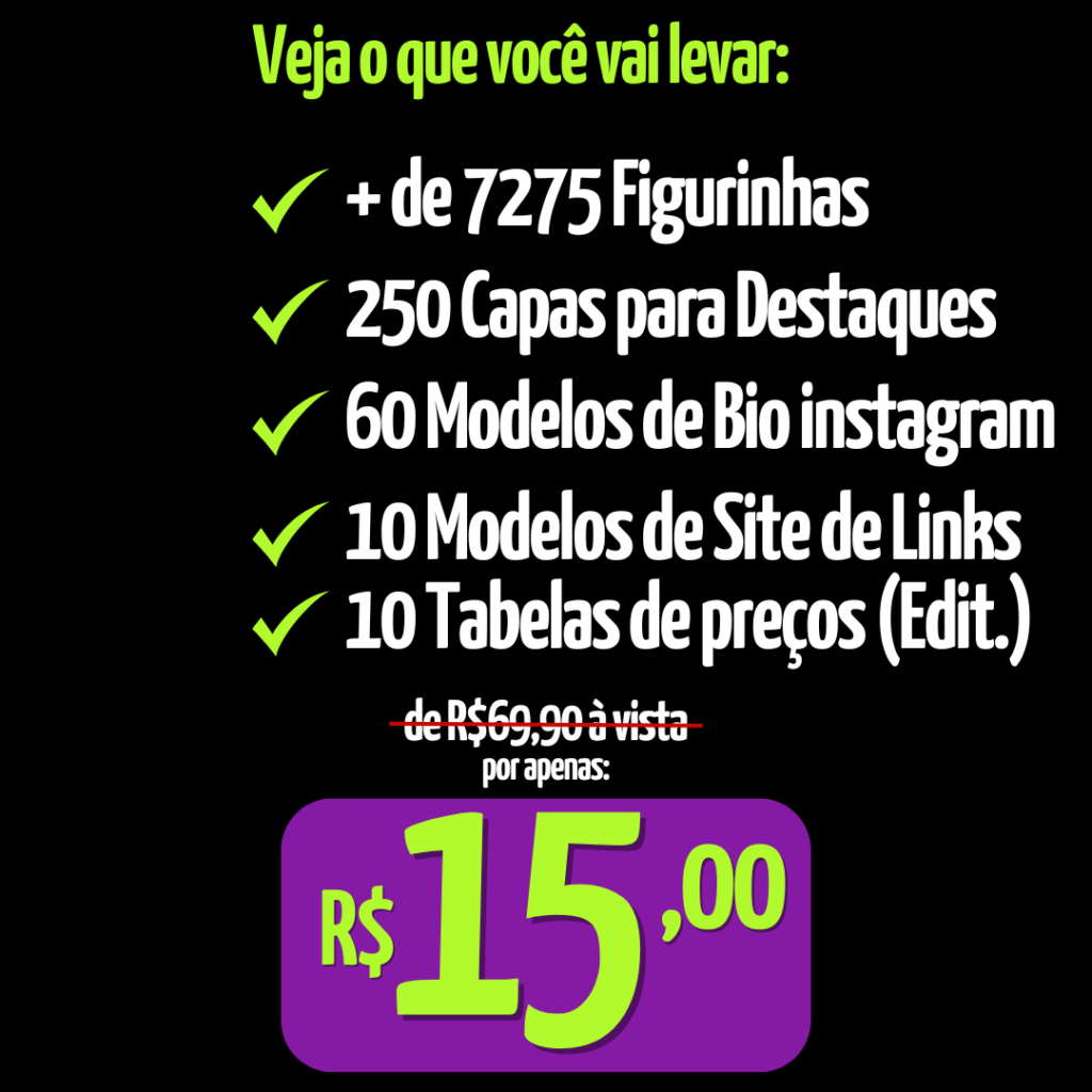 O Super Pack De Figurinhas Premium para Instagram, contém mais de 2000 mil figurinhas exclusivas categorizadas por diversos temas e nichos. São elementos gráficos de alta qualidade para usar nos stories do Instagram.